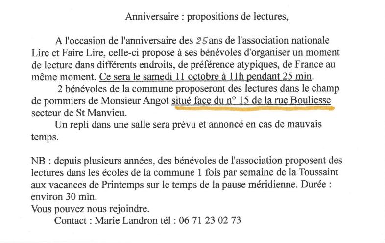 Anniversaire des 25 ans de l’association nationale Lire et Faire Lire