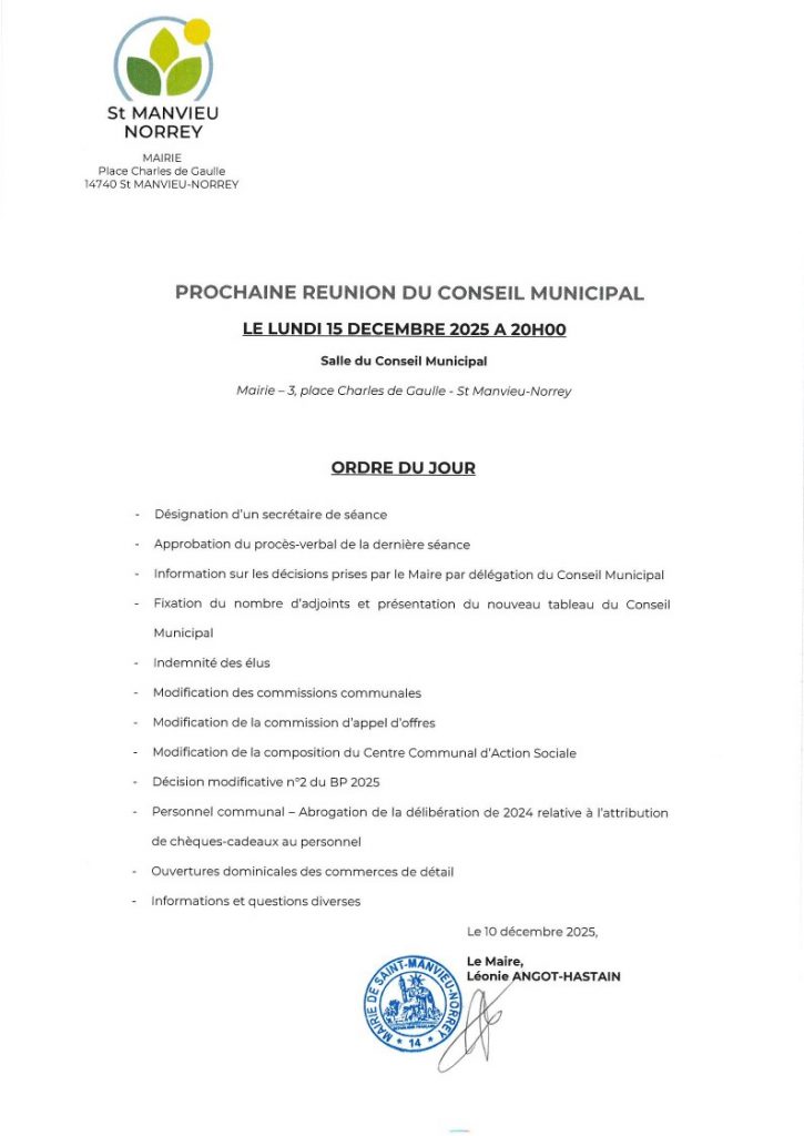 CONSEIL MUNICIPAL- LUNDI 15 DECEMBRE 2025 – 20H